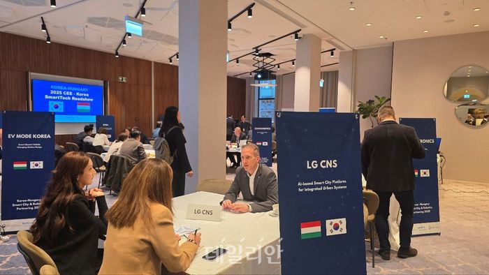 KOTRA와 국토부는 25일과 27일 헝가리와 체코에서 ‘2025 중부유럽 스마트테크 로드쇼’를 개최했다. 헝가리 부다페스트에서 열린 B2B 수출상담회의 모습. ⓒ대한무역투자진흥공사
