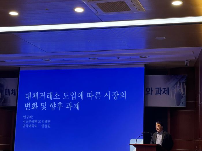 김대진 성균관대 교수는 27일 여의도 금융투자협회에서 '대체거래소 출범과 복수 시장체제 도입'을 주제로 진행된 한국증권학회 특별심포지엄에서 KRX와 NXT의 경쟁 체제가 '제로섬 게임'으로 귀결될 거란 일각의 우려에 선을 그었다.