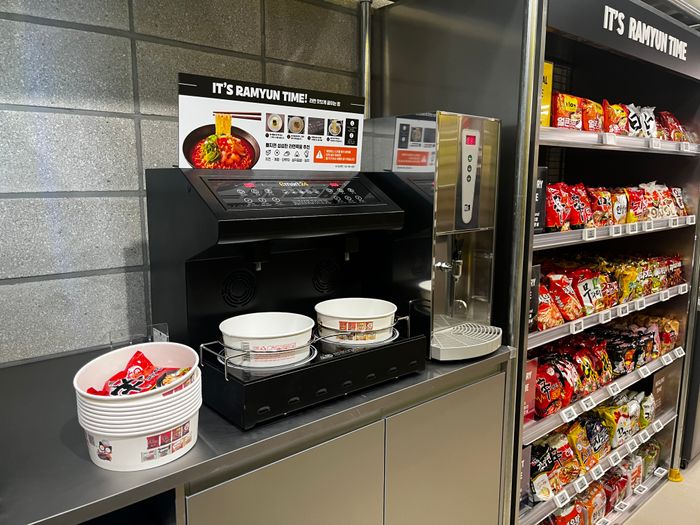 27일 오전 서울 성수역 4번 출구 앞. 편의점인 듯 아닌 듯 노출 콘크리트와 철물 구조물 등의 디자인이 어우러진 외관이 시선을 사로잡았다.
