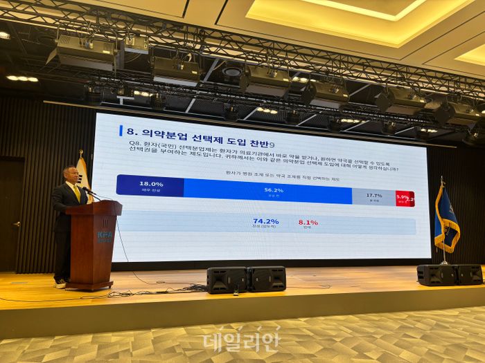 황규석 의협 범의료계 국민건강보호 대책특별위원회 홍보위원장이 27일 의협회관에서 ‘성분명 처방 국민 인식 조사결과’를 발표하고 있다. ⓒ데일리안 김효경 기자