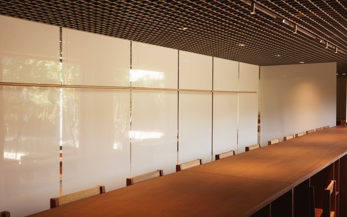 주차장을 지나 계단을 타고 올라서자 널찍한 두 개의 건물이 눈에 들어왔다. 박봉담의 가장 인상적인 지점은 자연을 건물 안으로 끌어안은 설계다. 중앙 천장을 과감하게 터 나무를 심었고, 방문객이 실내에서도 비가 내리고 눈이 쏟아지는 풍경을 그대로 마주하도록 했다.