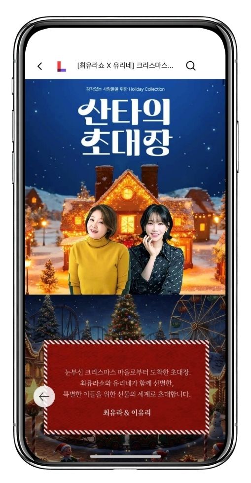 롯데홈쇼핑 대표 프로그램 '최유라쇼', '요즘 쇼핑 이유리' 콜라보 기획전 '산타의 초대장'.ⓒ롯데홈쇼핑