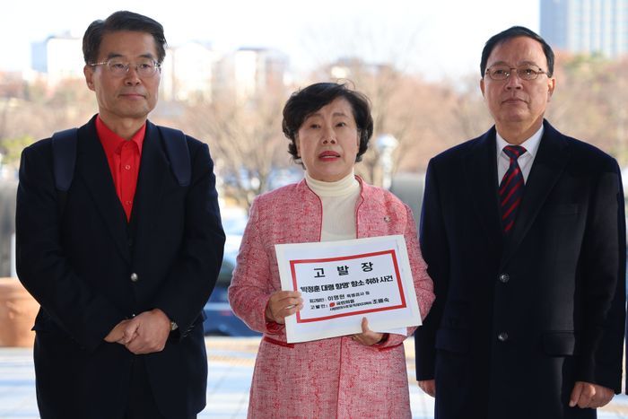 조배숙 국민의힘 사법정의수호 및 독재저지 특위 위원장이 1일 오전 경기 과천시 정부과천청사 민원실에서 '박정훈 대령 항명' 항소 취하 사건 관련해 이명현 해병특별검사 등을 고위공직자범죄수사처에 고발하며 발언하고 있다. ⓒ뉴시스