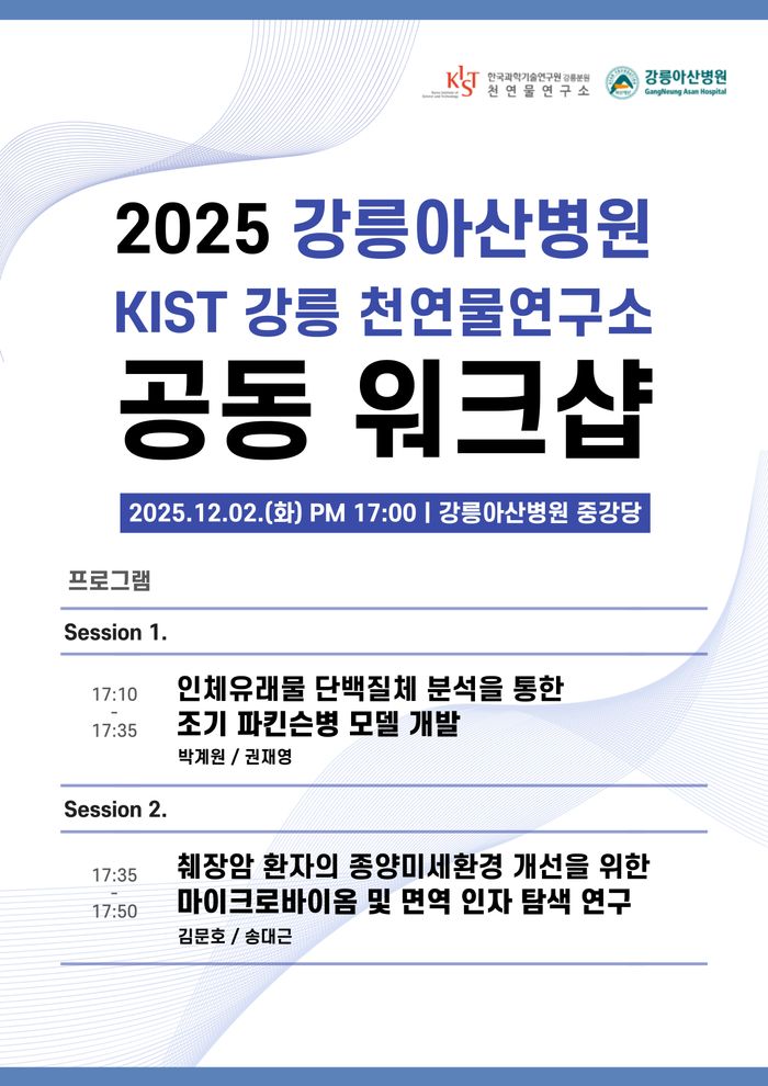 강릉아산병원은 오는 2일 병원 중강당에서 KIST 강릉분원 천연물연구소와 공동 연구 워크숍을 개최한다고 1일 밝혔다.