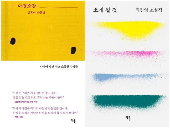 안온북스가 설립 초기 선보였던 ‘다정소감’은 작가 김혼비가 ‘다정’을 키워드로 한 다양한 주제와 소재를 다룬 산문들을 모은 책으로 저마다의 사연을 안고 살아가는 주인공들이 때로는 누군가에게 위로를 얻고, 때로는 서로 의지하며 삶을 풍성하게 채우는 과정을 담았다. ‘다정한’ 주인공들에게 따뜻한 응원을 받는 것 같다는 호평이 이어졌다.