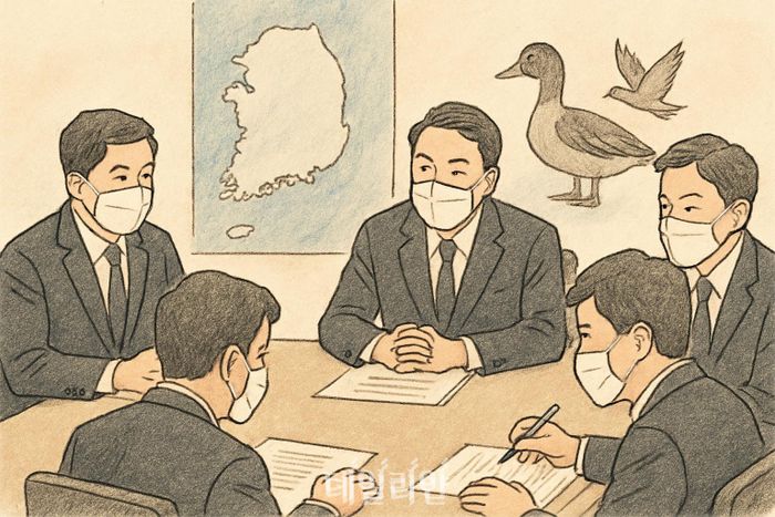 고병원성 조류인플루엔자 중앙사고수습본부는 12월 1일 농림축산식품부와 행정안전부가 합동으로 27개 위험 시군 부단체장과 관계부처가 참석한 방역 추진 상황 점검 회의를 열었다. ⓒ데일리안 AI 삽화 이미지