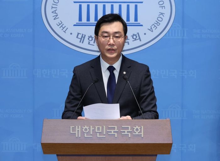 여성 비서관 성추행 혐의로 고소된 장경태 더불어민주당 의원이 지난달 30일 서울 여의도 국회 소통관에서 의혹을 부인하는 긴급 기자회견을 하고 있다.ⓒ뉴시스