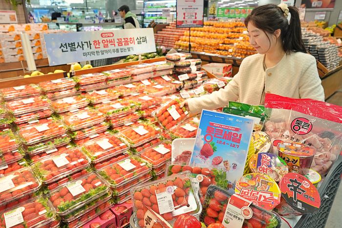 서울시 송파구에 위치한 롯데마트 제타플렉스 잠실점 딸기 매대에서 직원이 '통큰세일' 행사를 홍보하고 있다.ⓒ롯데마트