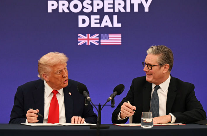 도널드 트럼프(왼쪽) 미국 대통령과 키어 스타머 영국 총리가 지난 9월 17일 영국 에일즈버리 인근 총리 별장에서 양해각서에 서명하고 있다. ⓒAP/뉴시스
