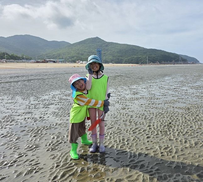 무의도 하나개해수욕장에서 조개 잡는 가족 ⓒ