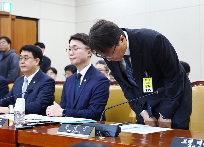 박대준 쿠팡 대표이사가 2일 오전 서울 여의도 국회 과학기술정보방송통신위원회 전체회의에서 고개숙여 인사하고 있다.ⓒ뉴시스