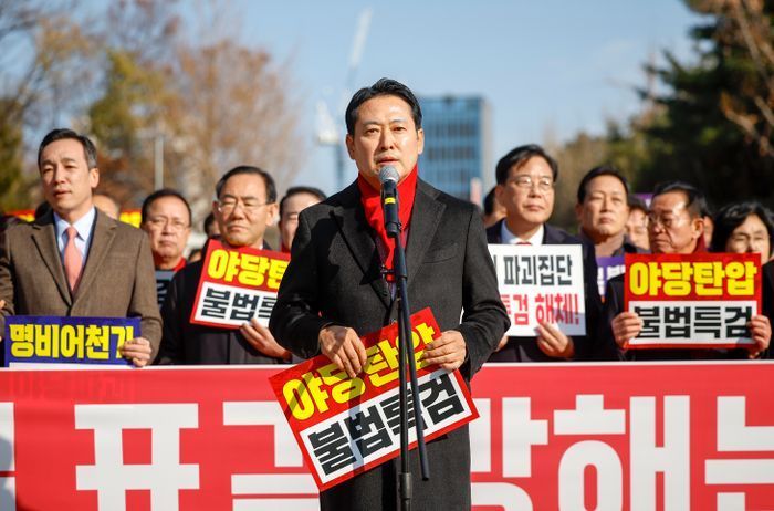 국민의힘이 추경호 국민의힘 전 원내대표의 구속 전 피의자 심문(영장실질심사)을 앞두고 '구속심사 규탄대회'를 열었다. 이들은 정부·여당이 야당 말살을 기도하고 있다며 추경호 전 원내대표에 대한 영장이 반드시 기각될 것이라고 했다.