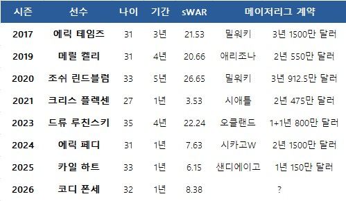 2010년대 후반만 하더라도 KBO리그에서 제법 긴 기간을 보내며 건강과 실력을 증명한 테임즈, 켈리, 린드블럼 등이 빅리그 역수출의 기회를 잡았다. 하지만 최근에는 에릭 페디와 카일 하트, 그리고 폰세까지 1년만 뛰고도 특급 성적을 낸다면 좋은 조건에 메이저리그로 돌아갈 수 있다는 공식이 만들어졌다.