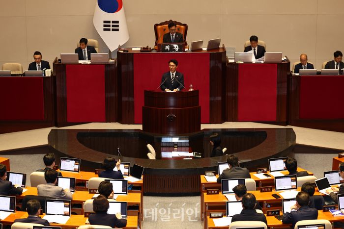 김민석 국무총리가 지난 2일 오후 서울 여의도 국회에서 열린 본회의에서 2026년도 예산안 수정안이 통과된 뒤 정부측 감사인사를 하고 있다. ⓒ뉴시스