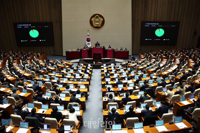 2일 서울 여의도 국회에서 열린 본회의에서 2026년도 예산안이 통과되고 있다.ⓒ뉴시스