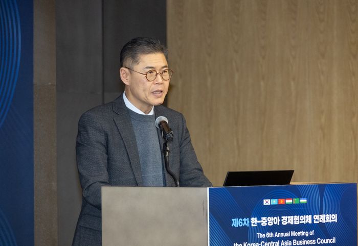김기현 한국무역협회 국제협력본부장이 3일 서울 강남구 삼성동 트레이드타워에서 중앙아시아 5개국 상공회의소 및 한국국제교류재단과 공동으로 개최한 '제6차 한-중앙아시아 경제협의체 연례회의'에서 환영사를 하고 있다. ⓒ한국무역협회
