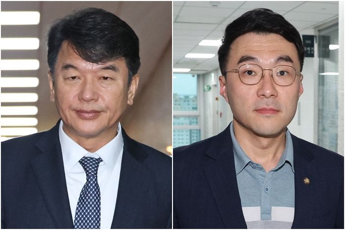 더불어민주당 문진석 원내수석부대표(왼쪽)와 김남국 대통령실 디지털소통비서관 ⓒ연합뉴스