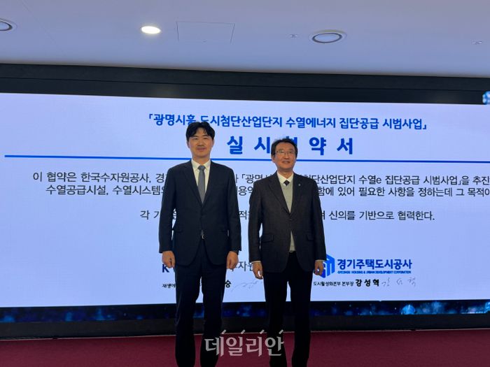 한국수자원공사는 3일 경기도 수원에 있는 경기주택도시공사 본사에서 ‘광명시흥 도시첨단산업단지 수열에너지 집단공급 시범사업’ 추진을 위한 실시협약을 체결했다.