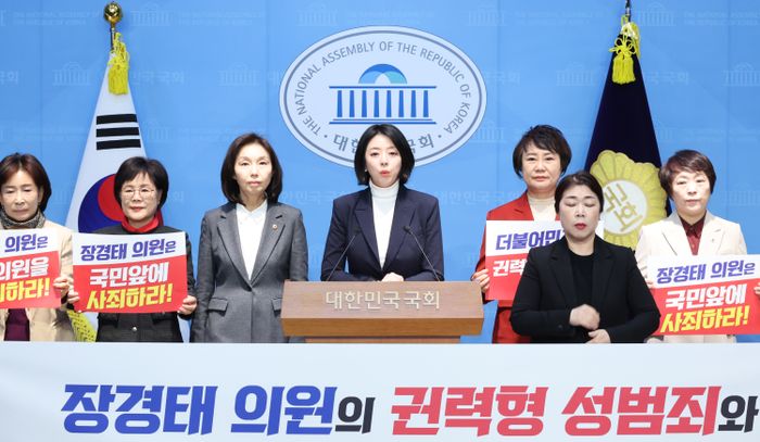 이들은 "민주당은 성범죄를 옹호하는 제 식구 감싸기와 피해자 조롱을 멈추고, 장 의원을 즉각 제명하라"며 "경찰은 거대 여당의 눈치만 살피지 말고 신속하고 엄정하게 수사해 피해자의 억울함을 풀어달라"고 목소리를 높였다.