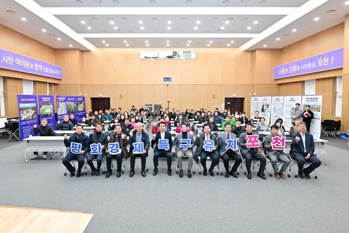 이날 설명회에는 백영현 시장을 비롯해 임종훈 포천시의회 의장, 유관기관 대표 및 읍면동 단체장 등 100여 명이 참석해 포천시 평화경제특구 구상안을 공유하고 의견을 나누었다.