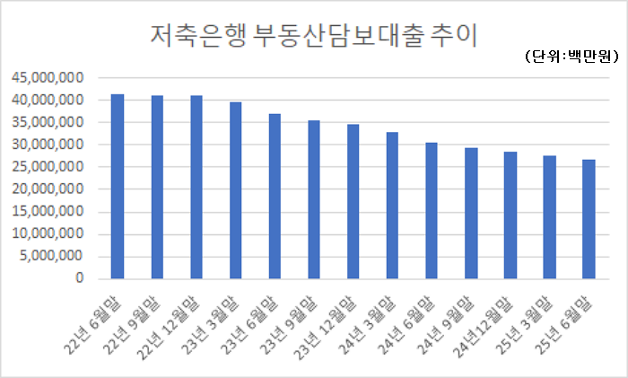 국내 저축은행이 부동산을 담보로 내준 대출 규모가 1년 새 3조6000억원 넘게 줄어든 것으로 나타났다. 부동산 경기 침체에 따른 리스크 관리 기조가 이어지면서부동산 대출 축소 흐름이 장기화되고 있다는 분석이다.