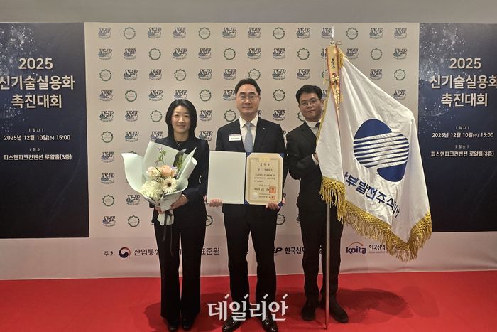 한국남부발전은 10일 피스앤파크컨벤션에서 열린 '2025 신기술 실용화 촉진대회'에서 신기술인증 제품의 판로개척과 공공구매 촉진에 기여한공로로 대통령 표창을 수상했다.ⓒ남부발전
