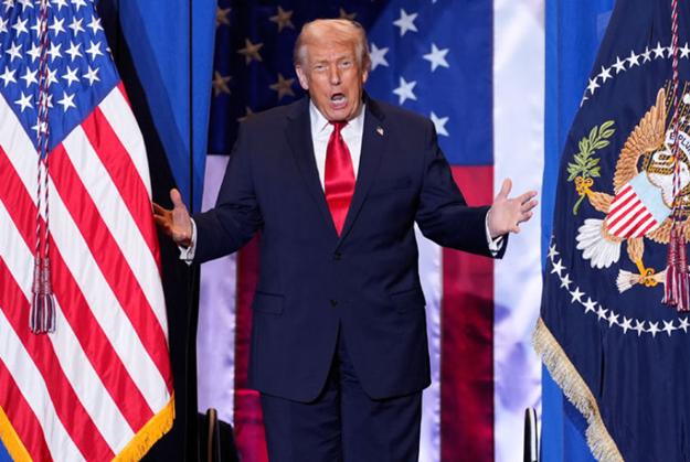 도널드 트럼프 미국 대통령이 9일 펜실베이니아주의 한 카지노 리조트에 도착해 인사하고 있다. ⓒAP/뉴시스