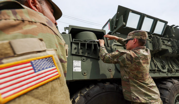 6월 13일 경기도 동두천시 캠프케이시에서 주한미군 장병들이 장갑차를 점검하고 있다. ⓒ뉴시스