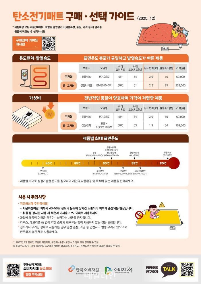 소비자원, 탄소매트 구매·선택 가이드 발표