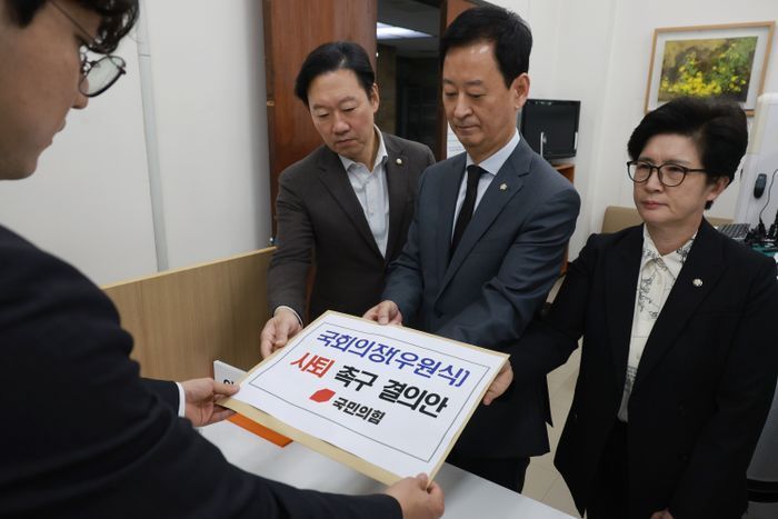 최은석 국민의힘 원내수석대변인을 비롯한 박수민·강선영 의원은 11일 오전 국회 의안과에 해당 결의안을 제출한 뒤 기자들과 만나 "당연히 지켜야 할 정치적 중립성을 완전히 무시하고 민주당에 야합하는 행태를 보였다. 의장으로서 자격이 전혀 없다"며 이같이 밝혔다.