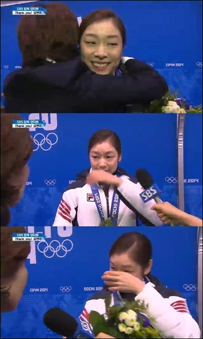 시상식을 마친 김연아는 곧바로 SBS와 인터뷰를 가졌고, 경기를 중계한 방상아 해설위원을 보자 그동안 참았던 눈물을 터뜨리고 말았다. 이에 방 위원은 김연아를 안아주며 "고마워. 알지? 넌 최고야"라며 함께 눈물을 흘리기도 했다.