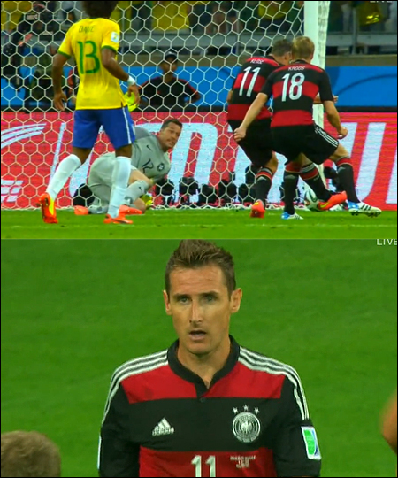 이날 클로제는 전반 22분, 문전 혼전 상황서 날린 슈팅이 훌리오 세자르 골키퍼에 걸렸지만 재차 슛을 시도해 브라질 골망을 갈랐다. 이로써 클로제는 개인통산 월드컵 16호 골을 기록하며 가장 많은 골을 넣은 선수로 역사에 이름을 남겼다. 특히 동률을 기록 중이던 브라질의 축구황제 호나우두가 경기를 직접 관람하고 있어 의미가 배가됐다.