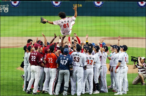 박찬호는 18일 광주-기아 챔피언스필드서 열린 ‘2014 한국야쿠르트 세븐 프로야구’ 올스타전 시구자로서 축제의 문을 연 뒤 영광의 공식 은퇴식을 가졌다. 고향팀이자 한국에서 뛴 유일한 프로팀 한화 이글스 유니폼을 걸쳤지만 한국을 대표하는 레전드로서의 가치를 두툼하게 입었다.