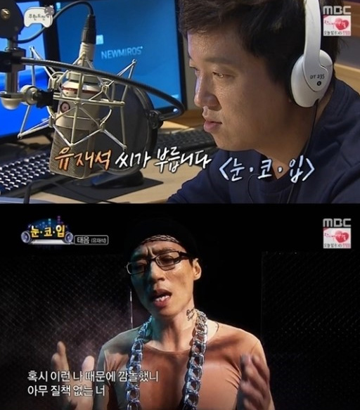 라디오 DJ로 변신한 정형돈은 "지난주 방송 도중 불미스러운 사고가 있었다. 시청자께 죄송한 마음을 담아 노래 한 곡 띄어드립니다. 유재석씨가 부릅니다. '눈코입'"이라고 소개, 태양으로 변신한 유재석이 등장했다.