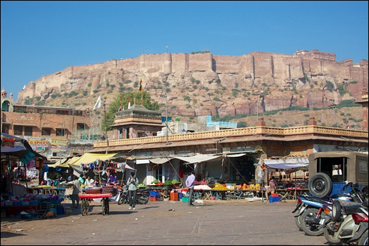 시장 상인들과 어울려 짜이를 한 잔 들이켜고는 그들이 손가락으로 가리키는 곳을 향해서 걸음을 옮겼다. 메헤랑가르 요새로 간다. 멀리서도 한눈에 보이는 메헤랑가르 요새는 시계탑 뒤편의 게이트를 지나 왼편으로 마을 길을 따라 경사로를 올라가면 어렵지 않게 찾아갈 수 있다. 요새가 가까워짐에 따라 경사로도 더욱 가팔라지며 한층 더 요새의 위용을 더한다.