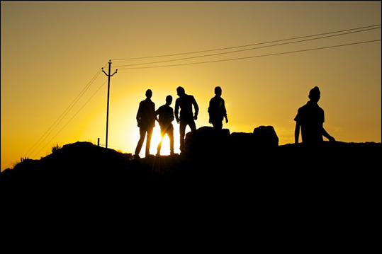 성 밖으로 나오니 앞쪽 언덕에 청년들이 나란히 걸어오고 있었다. 카메라를 의식한 탓일까, 스스로 제법 멋지다고 생각하는 포즈를 잡아주는 것 같았다. 청년들에게는 미안하지만, 그들 뒤로 서서히 사그러가는 황금의 노을이 나의 시선을 더욱 사로잡았다.