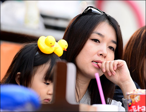 조명진은 같은 장소에서 8일 오후 열린 한국시리즈 4차전에도 변함없이 관중석에 앉아 남편을 응원했다.
