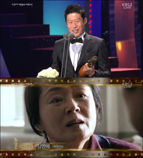 이날 남우조연상 후보에는 곽도원('변호인'), 김인권 ('신의 한 수'), 이경영('제보자'), 조진웅('끝까지 간다')이 경합을 벌였다.