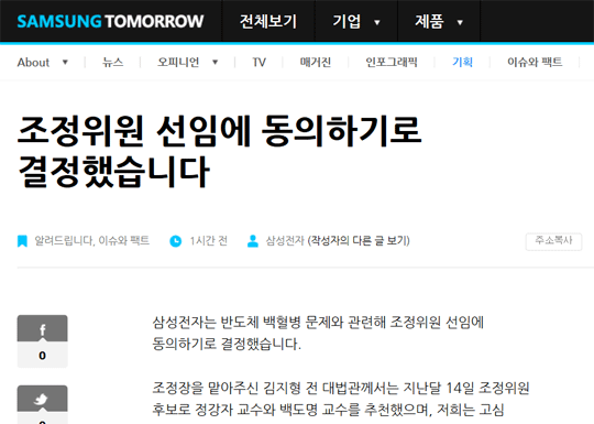 삼성전자 "후보중 한명 반올림에 편향된 행보…숙고 끝에 선임동의"