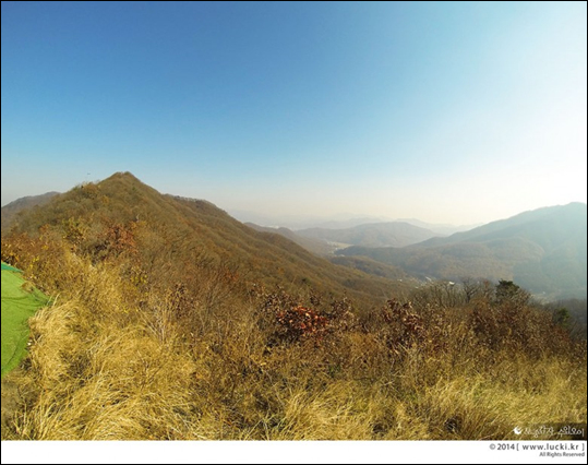 아래서 볼 때는 하늘이 파랗게만 보였는데, 꼭대기에 오르니 아쉽게도 약간 뿌연 안개로 덮여있었다. 그리고 산 정상에는 이미 낙엽이 모두 떨어져 있다. 어쨌든 산 정상에 오르는 건 언제나 상쾌하고 기분 좋은 일.