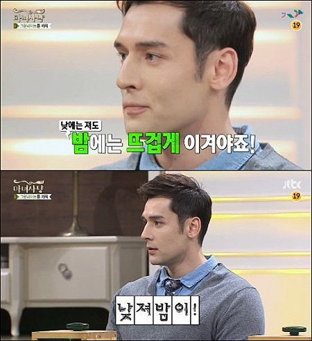 이에 유세윤은 "설마 지겠냐. 지는 게 상상이 안 된다"며 그의 근육질 몸을 부러워했다. 또한 한혜진은 "줄리엔 강 같은 사람이 '낮이밤이'면 무섭다"고 말했고, 신동엽은 "줄리엔 강 같은 사람이 '낮이밤져'면 어떠냐"라고 물었다. 그러자 한혜진은 "그럼 안 만나죠"라며 단호하게 말해 모두를 폭소케 했다.