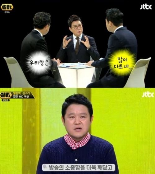 그리고 새해 첫 날, 출연 중이던 JTBC ‘썰전’에 모습을 드러냈다. 이른 바 ‘가정사 논란’의 김구라가 방송 복귀를 하는 것을 두고 갑론을박이 펼쳐졌다. 응원의 시선과 더불어 비판이나 원색적 비난의 의견도 이어졌다.