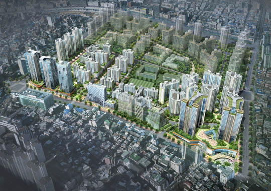 현대건설과 SK건설, 포스코건설이 컨소시어을 이뤄 공급하는 왕십리뉴타운3구역 '센트라스' 조감도ⓒ포애드원