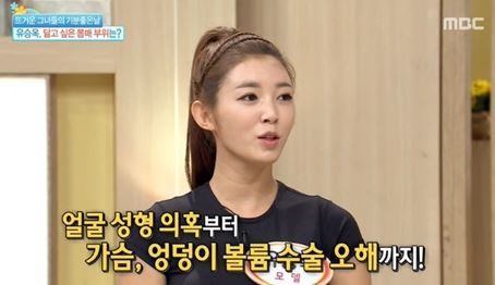 유승옥은 5일 방송된 MBC ‘기분 좋은 날’에서 “턱을 깎고 코와 가슴을 수술했다는 오해를 받았다. 엉덩이에 ‘뽕’을 넣었다는 루머도 있었다. 좀 억울하더라”고 털어놨다.