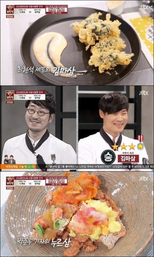 이날 대결을 펼친 박준우는 세 가지 맛 누룽지 안주인 '누르삼'을, 최현석은 김말이 튀김 '김마삼'을 선보였다.
