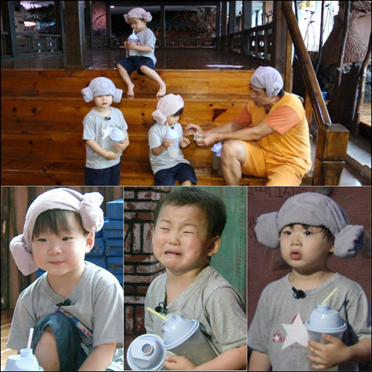 삼둥이 대한-민국-만세와 아빠 송일국이 첫 찜질방 탐험에 나섰다.