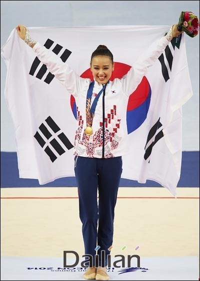 이로써 전날 열린 볼과 후프에서 각각 18.150점, 18.000점을 얻었던 손연재는 4종목 합계 72.550점을 기록, 안나 리자트디노바(71.750점·우크라이나)-멜리치나 스타니우타(70.800점·벨라루스)를 제치고 금메달을 목에 걸었다.