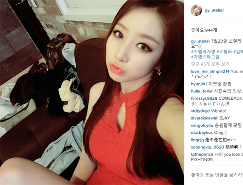 지난 9일 가영은 자신의 인스타그램을 통해 "7월 20일 스텔라 컴백. 떨린다"라는 내용의 글과 함께 한 장의 사진을 게재했다.