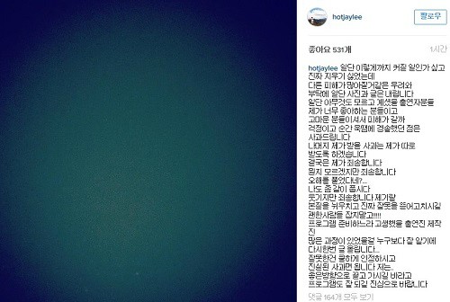이정은 “순간 욱 하는 성격 때문에 경솔했던 점은 사과 드린다”며 “나머지 제가 받을 사과는 제가 따로 받겠다”고 했다. 이어 “결국은 제가 죄송하다. 무슨 소리인지 모르겠지만 죄송하다”고 사과했다. 그러나 이내 “오해를 풀었다네? 나도 좀 같이 풉시다. 웃기지만 죄송합니다. X기랄. 본질을 뉘우치고 진짜 잘못을 뜯어고치시길. 괜한 사람들 잡지 말고!”라고 적었다.