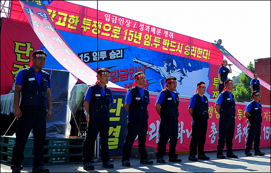 사측이 16차 교섭에서 일괄 제시한 내용은 △일당 2950원 정액 인상(4.6% 인상) △2016년 임금피크제 시행 △2016년 임금피크제 시행 노사합의에 따른 일시금 300만원 지급 △2015년 성과배분(2015년말 연간 실적 최종 합산 후 지급) △무주택 융자 금액 상향 등이다.
